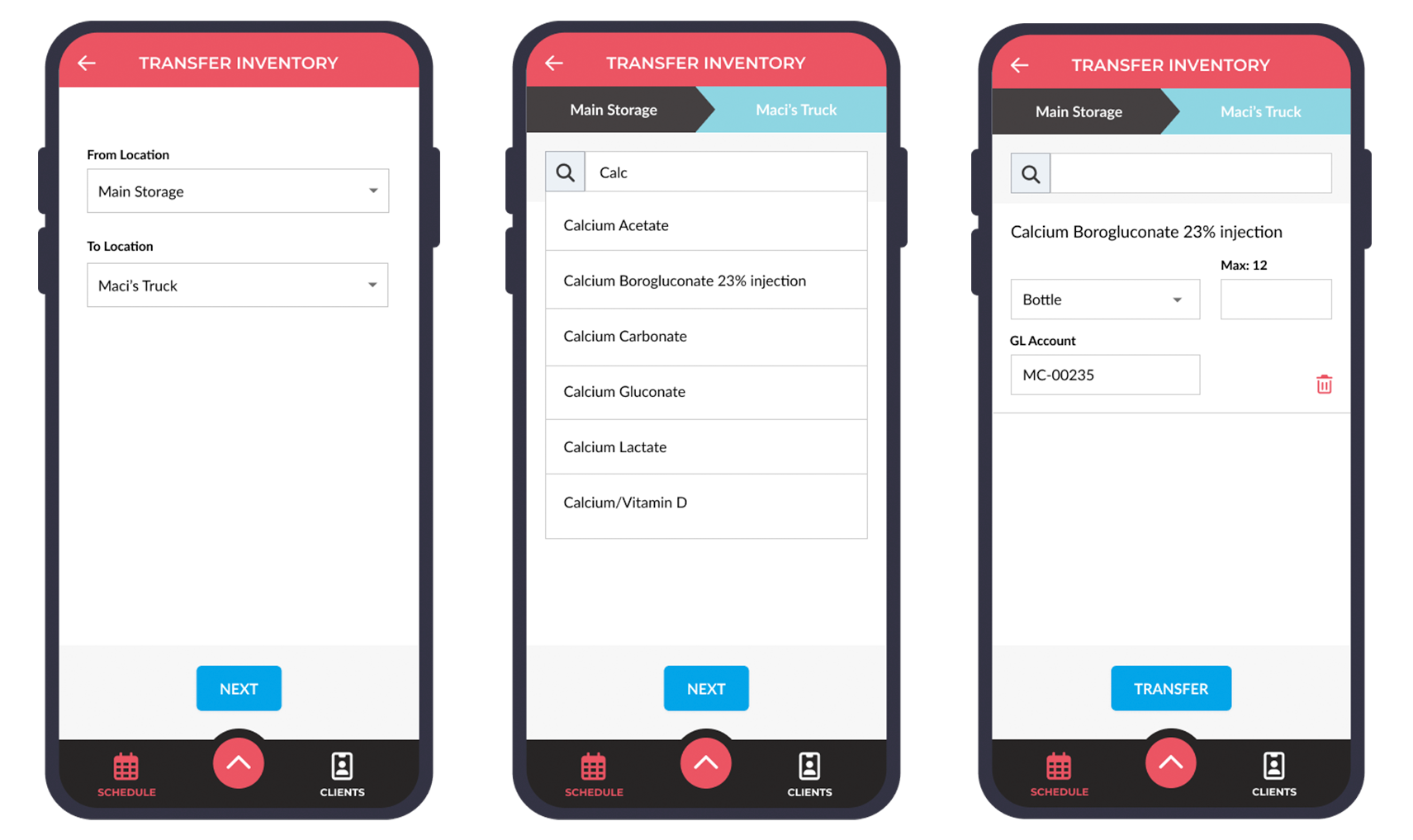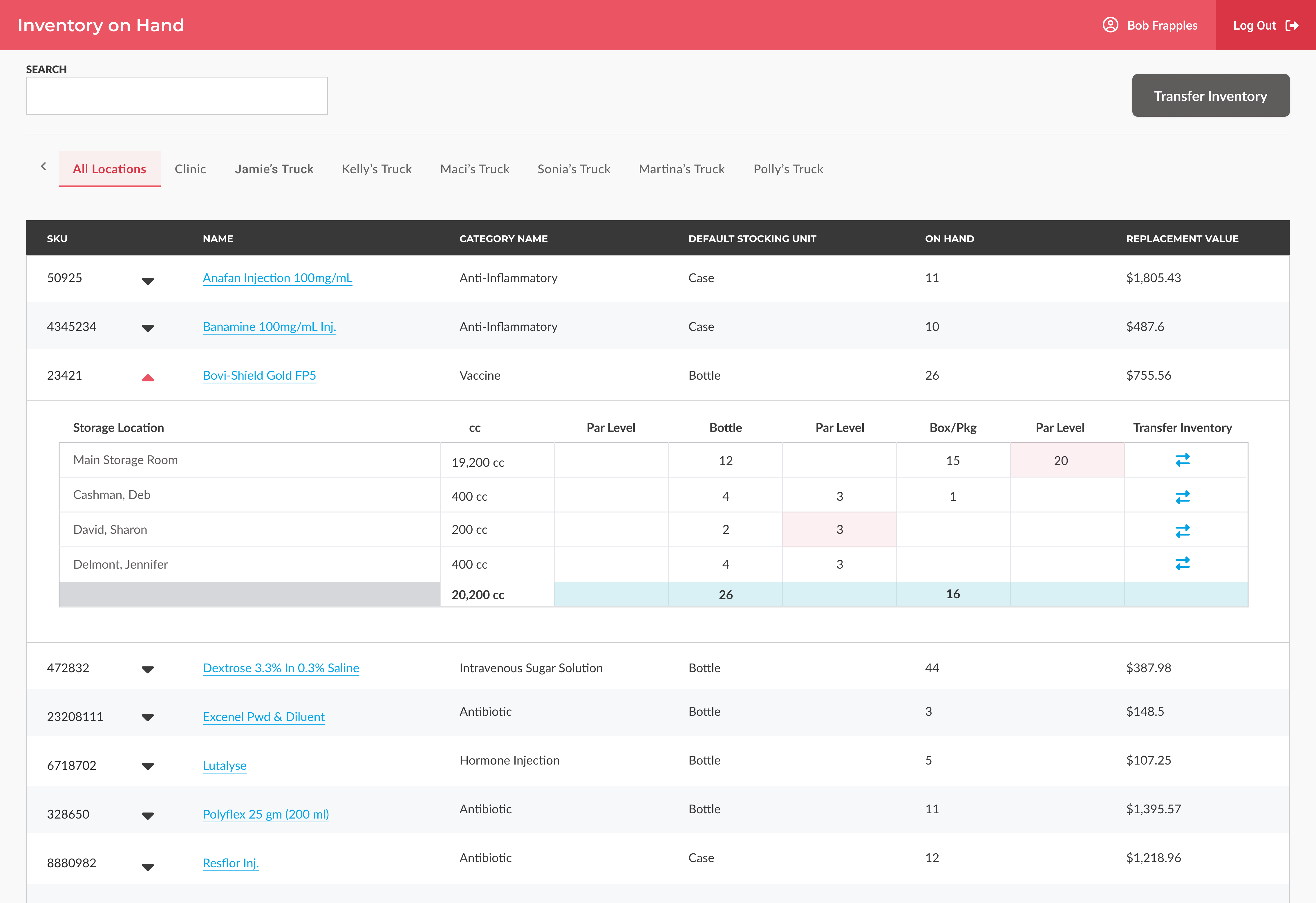 Manage stock across clinics, trucks, and satellite storage, all in one place. Assign, transfer, and track products to prevent double-ordering.